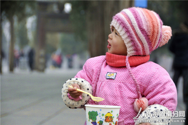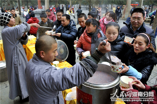 央廣網河南分網消息 據人民網報道:又到一年臘八節。1月8日,記者一大早趕往河南嵩山少林寺,和那里的游客和市民美美的喝了碗臘八粥。當天,少林寺景區免費向市民和游客發放少林寺秘制的“五行臘八粥” 6000碗。現場小朋友的吃相著實萌翻啦!(霍亞平 肖懿木)