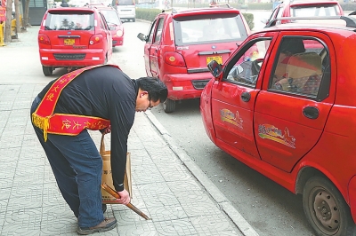出租車(chē)集中地是他撿煙頭的重點(diǎn)地方。