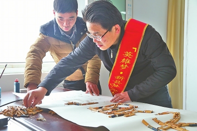 他在用撿到的煙頭拼“無(wú)煙中原”大字。