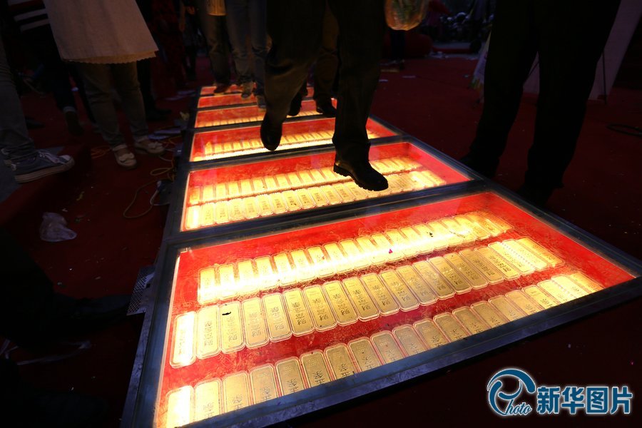 央廣網河南分網消息 據新華網報道:當日,河南鄭州一家金店開業,商家在店門前用500公斤黃金鋪成了一條價值1.5億元的“黃金大道”,多名保安手執警棍保衛。