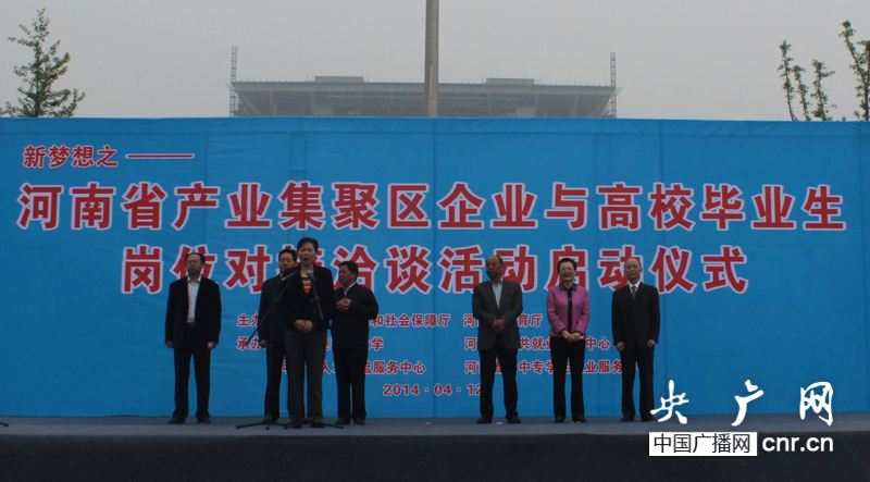 央廣網河南分網消息 (記者 魏林甫)4月12日上午,“2014年河南省產業集聚區企業與高校畢業生崗位對接洽談活動啟動儀式”在河南財經政法大學舉行,河南省副省長王艷玲出席并宣布活動啟動。