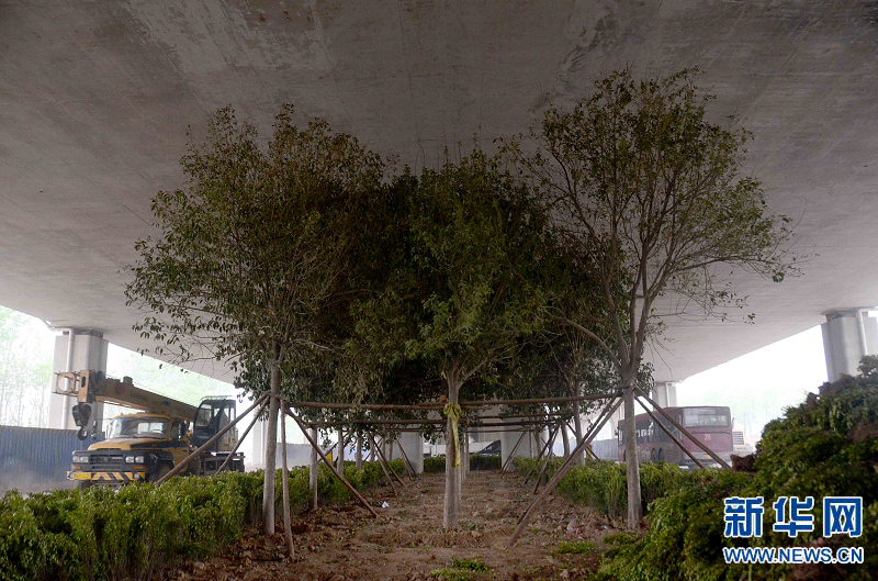 央廣網河南分網消息 據新華網河南頻道報道:近日,鄭州市南三環快速路立交橋下,新栽種的樹木引起大家的關注。記者在鄭州市紫辰路與南三環交叉口向西,南三環快速路公交橋下看到了栽種在橋下的樹木。這些樹木高度幾乎都與立交橋底齊高,新移栽的樹木直徑超過10厘米,高度約6米。不少人心存疑惑,這些樹木是否適合在橋下的環境生長?如果樹木瘋長會不會危害到橋梁的安全?園林部門回應,此次在橋下種植的植物耐陰且生長緩慢,在橋下完全可以成活并且不會對橋體造成威脅。(新華社記者 李安攝)