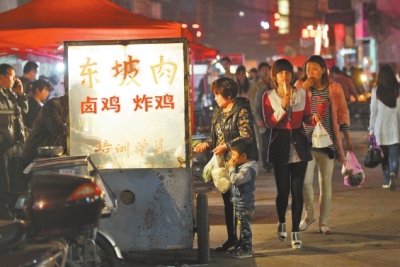 除了真真切切地滿足味蕾,城中村的小吃亦是極大的視覺享受。特別是在夏天晚上,長長的街道兩側(cè)盡是露天擺放的各色小吃,遠(yuǎn)遠(yuǎn)望去頗為壯觀,什么開封的雞血湯,豫東的吊爐燒餅,色澤鮮亮的道口燒雞……各色美食在燈光下散發(fā)出誘人的味道。置身其間,目光所至,盡是人間草根美食,常有目不暇接之感,仿佛顧盼之間,就已感受了這些美味。
