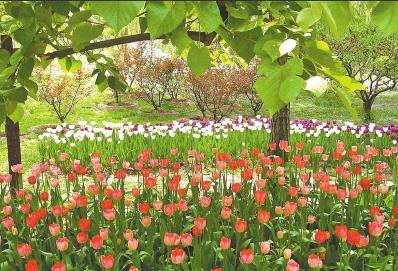 洛陽的郁金香花園是典型的“雙花斗艷”之地,四月里牡丹的國色天香令人流連忘返,四月底五月初盛開的郁金香花更顯優(yōu)雅清新,牡丹與郁金香交織在一起,演繹著繁華奔放與清新優(yōu)雅兩種不同的風(fēng)格。郁金香花園里的建筑多為荷蘭風(fēng)格,起伏的小型草原,精致的白色雕像群,高大的荷蘭風(fēng)車,仿佛置身于荷蘭的某個風(fēng)情小鎮(zhèn);遠處熱鬧的游樂場,郁郁蔥蔥的綠樹,潺潺的流水,體現(xiàn)出中國風(fēng)格的園林之美。安靜與繁華在這里并存,十分愜意。據(jù)介紹,洛陽郁金香花園的花卉種植面積近150畝,是人們賞花游玩、情侶傳達愛情信息、感悟異國風(fēng)情的一個好去處。