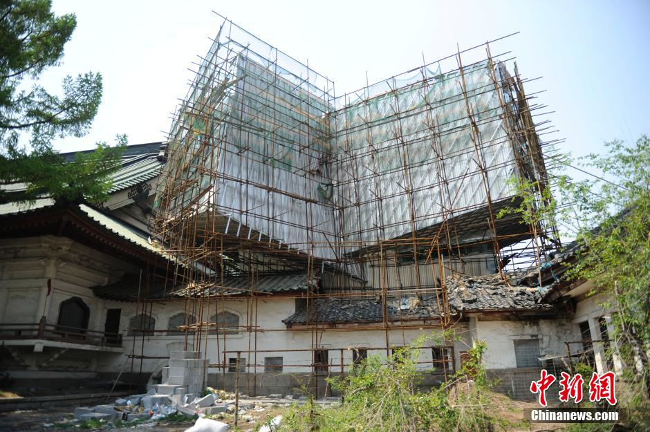 央廣網河南分網消息 據中國新聞網報道:5月7日,被違建“壓頂”的長春東本愿寺舊址。近日,日本侵華時期建成的長春東本愿寺舊址遭到房地產開發公司違建破壞,引發了輿論的廣泛關注。當日,長春市文物局工作人員回應稱,政府相關部門正采取措施處理此事,已責令當事方拆除違建,確保恢復文物原貌。(張瑤 攝)