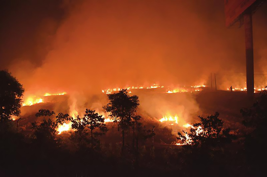 成樂(lè)高速距離青龍出口約2公里處,路邊出現(xiàn)一片“秸稈火海”。