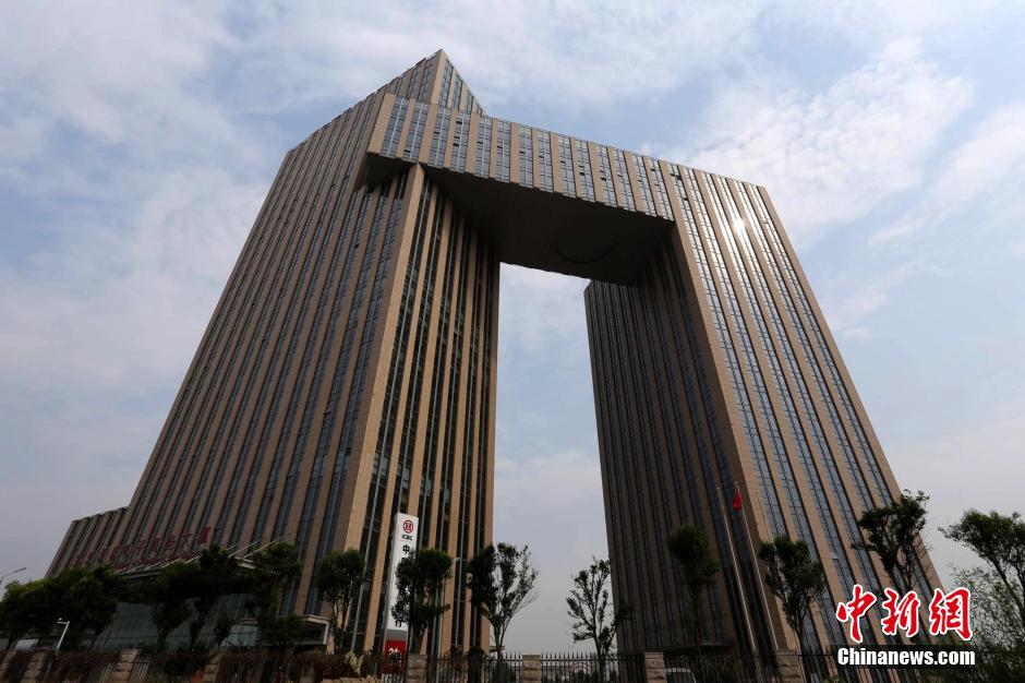 央廣網河南分網消息 據中新網報道:這座建筑位于鄭州商都路與京港澳高速口西北角,是新建的鄭州國家干線公路物流港綜合服務樓,該樓由兩棟平行的高樓組成,一個“橫梁”將它們連接。左邊樓高120米,右邊樓高96.35米;建筑層數為地下二層,地上28層(左樓)、23層(右樓),左右樓通過20層至23層鋼結構連接體聯系。據了解,這座樓由同濟大學建筑設計院綜合設計一所主持設計。楊正華 攝