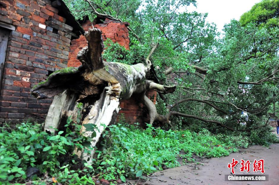 央廣網南分網消息 據中新網報道:5月21日下午17時起,湖南省桂陽縣發生冰雹及強降雨災害天氣,整個冰雹天氣持續時間長達1小時20分鐘左右,致使該縣多個鄉鎮受災嚴重。圖為桂陽縣流峰鎮,一棵千年古樹在冰雹中倒下。(歐陽常海 攝)