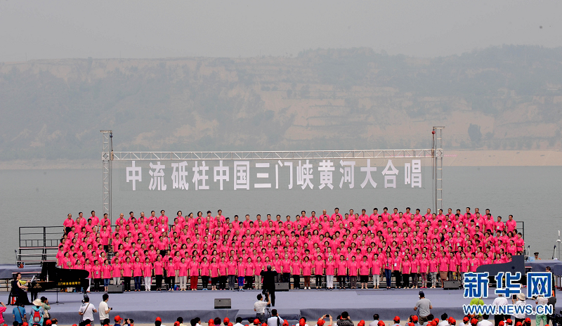 央廣網河南分網消息 據新華網河南頻道報道:當日,“中流砥柱”中國三門峽黃河大合唱比賽在河南三門峽市黃河岸邊舉行,來自全國各地24支代表隊的1000多名選手參加比賽,抒發對黃河母親的熱愛之情。(新華社記者 朱祥 攝)