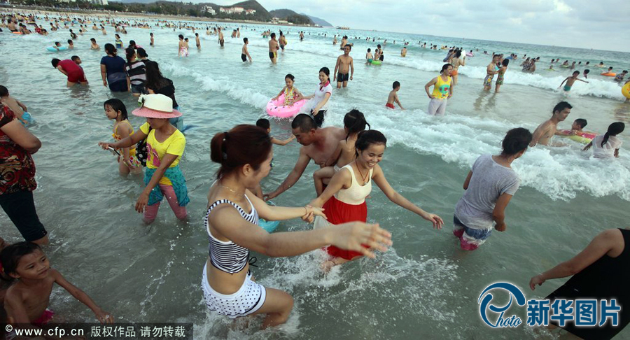 2014年6月2日,海南省三亞市,端午節當天,上萬名市民及游客踴到大東海洗龍水,熱熱鬧鬧過端午節。上萬市民及游客洗龍水。圖片來源:東方ic