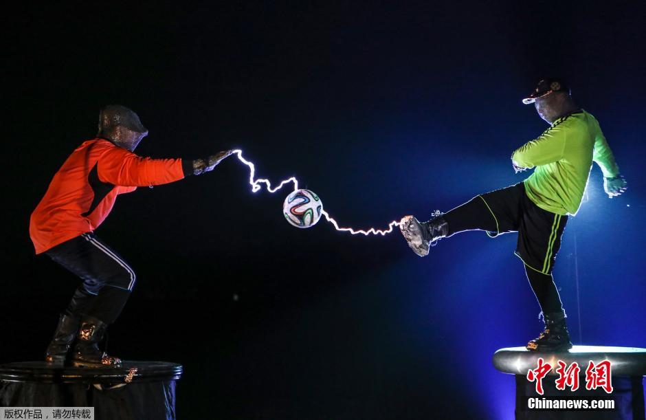 隨著這幾年技術(shù)的改進(jìn),王增祥用于制造閃電的特斯拉線(xiàn)圈設(shè)備日趨完善。人身著特制的鐵衣站在上面表演各種炫酷的動(dòng)作,與閃電共舞。為了讓球員的腳尖與球之間能產(chǎn)生更美的電弧,鞋面上也要貼一層特殊的材料。他還對(duì)足球做了特殊處理——給足球也穿上一層“鐵衣”,皮質(zhì)的足球才不至于在閃電中被燒焦。