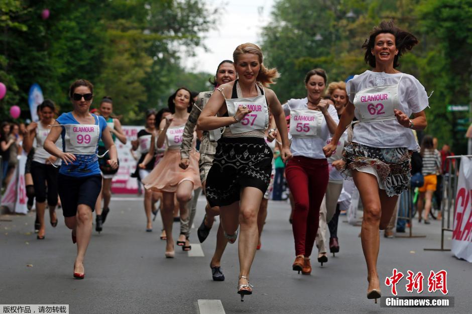 據中新網報道:當地時間6月15日,羅馬尼亞布加勒斯特舉行高跟鞋跑步比賽,30多名女性穿高7厘米以上的高跟鞋奮力奔跑。獎品是價值1000歐元的購物券。