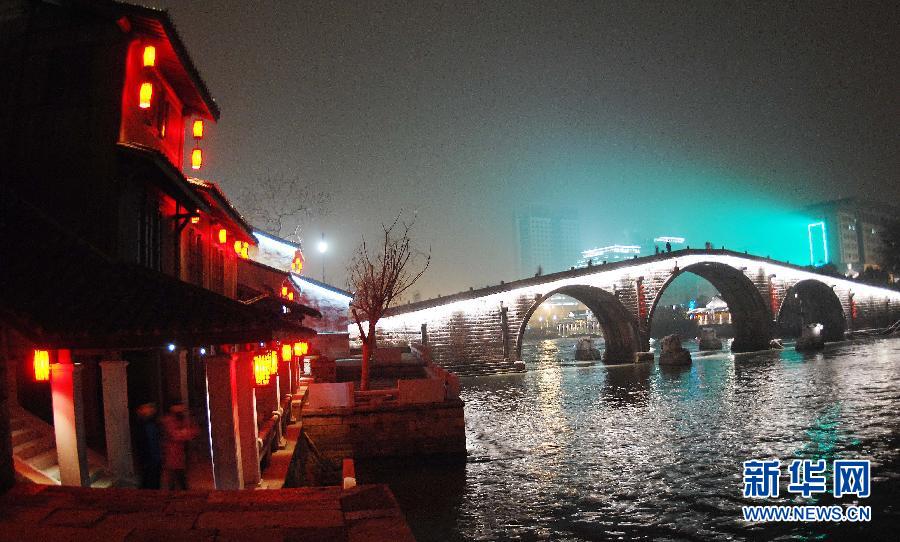 杭州市運河橋西歷史街區的仿古建筑上掛滿紅燈籠(2009年2月5日攝)。 6月22日,正在卡塔爾首都多哈召開的第38屆世界遺產大會審議并通過中國提交的“大運河”申遺申請。至此,“大運河”作為文化遺產正式列入世界遺產名錄。新華社發