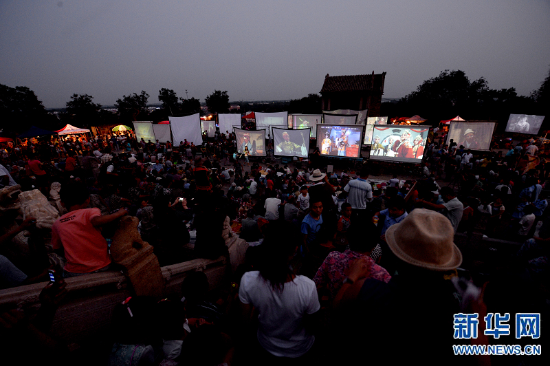 央廣網河南分網消息 據新華網河南頻道報道:在河南省浚縣浮丘山廟會上,數十場電影在碧霞宮廣場同時上映成為一大奇觀。過去,人們是在廟會上搭臺唱戲,20世紀80年代后改成了放電影,起初播放的是電影膠片,現在變成數字電影。數以萬計趕廟會的群眾每年這個時候一早就來到這里,搶占位置,席地而坐,享受電影大餐。(新華社記者 趙鵬 攝)