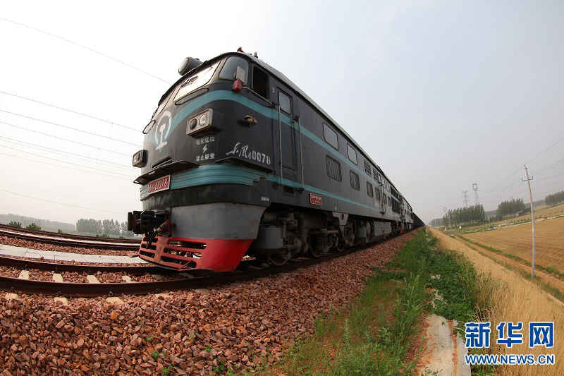 6月22日,首列貨運列車?坑碣耔F路河南許昌蘇橋西站等待進入京廣鐵路。