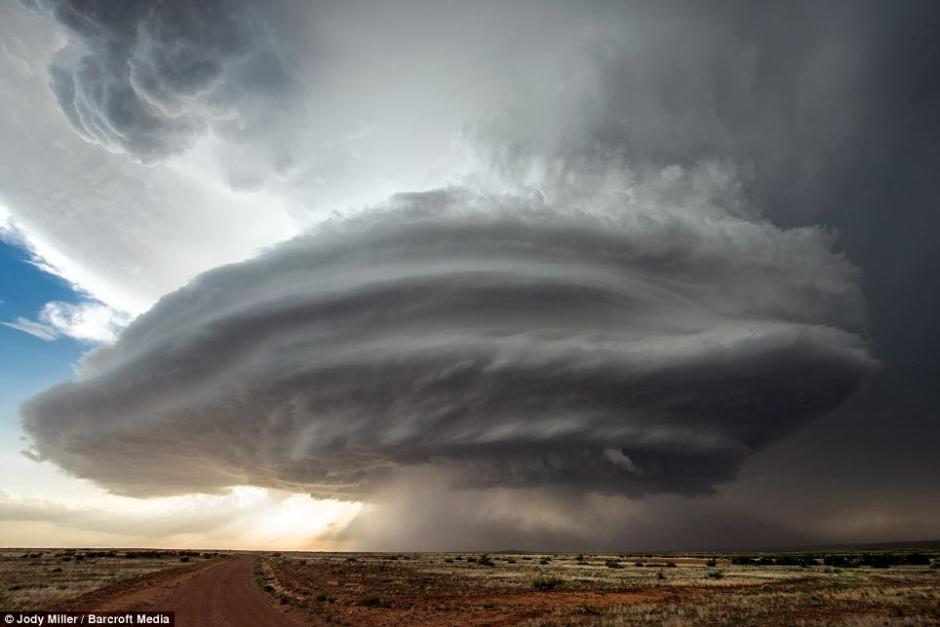 2014年7月17日消息,美國莫哈韋沙漠,巨型風暴云宛如UFO在天空中盤旋。這些圖片是風暴天氣追逐者Jody Miller在短短4個小時內拍攝的,在風暴云出現的羅斯威爾地區,據悉在1947年出現過UFO墜落傳聞。