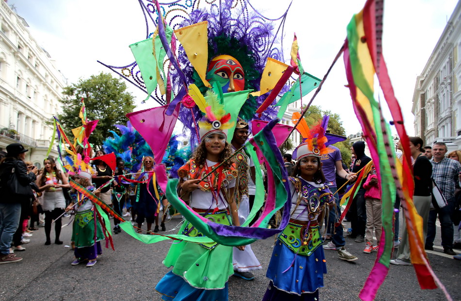 8月24日,表演者參加在英國倫敦西區舉行的諾丁山狂歡節兒童日大游行。