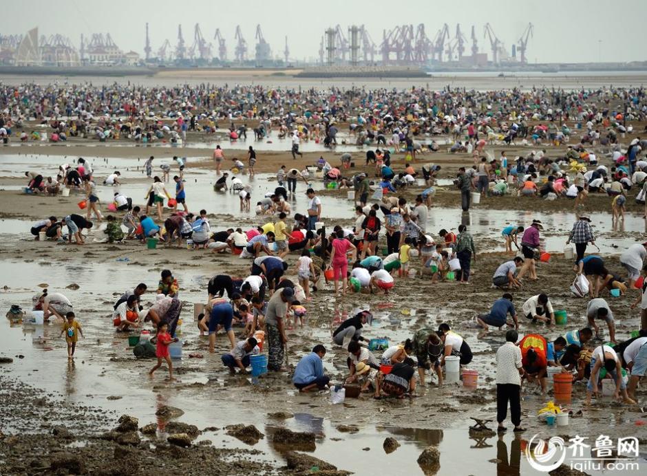 央廣網河南分網消息 據中新網報道:近日,日照嵐山多島海景區西側海域,海水退潮后驚現萬人“拾蛤大軍”,長達3公里的海灘人滿為患,競相拾白蛤。據了解,萬名“拾蛤大軍”均來自附近村莊,這片水域白蛤原是人工放養,主人因故棄養,以致造成萬人分享的熱鬧場景。