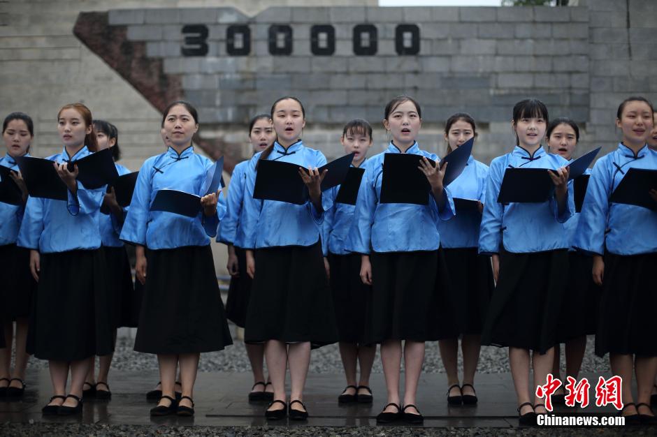9月18日,侵華日軍南京大屠殺遇難同胞紀(jì)念館悼念廣場上,南京曉莊學(xué)院新聞傳播學(xué)院的34名大學(xué)生身著上世紀(jì)一二十年代的學(xué)生裝,在“勿忘九一八”南京青少年詩歌朗誦會暨“勿忘國恥·圓夢中華”朗誦比賽啟動儀式上朗誦《松花江上》、《南京!南京!》等詩歌。當(dāng)日是“九一八事變”83周年,中國各地紛紛舉辦各種形式的紀(jì)念活動。中新社發(fā) 泱波 攝