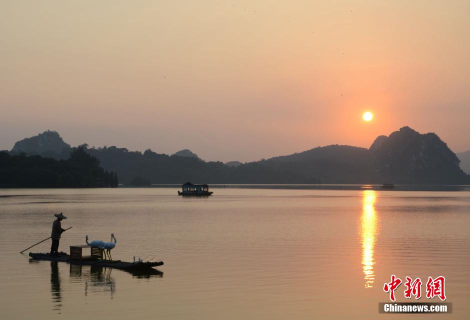 9月18日,“臥佛含丹”的星湖美景。“臥佛含丹”是肇慶七星巖二十景之一,每年出現在清明、中秋前后的晴天。廣州五羊天象館齊步云稱,今年星湖觀賞臥佛含丹奇景的最佳時間段為9月16日至22日,即秋分前后的7天內。當地市民稱,臥佛含丹之時,遙對臥佛祈福可身體健康、延年益壽、幸福和滿。中新社發 黃耀輝 攝