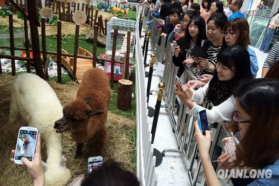 9月19日,來福士商場(chǎng)內(nèi)市民爭(zhēng)相圍觀“神獸”羊駝,并拍照留念。千龍網(wǎng)記者 張啟新攝
