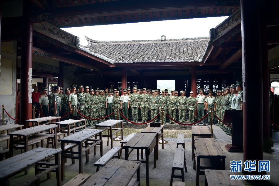 央廣網河南分網消息 據新華網報道:9月19日,武警福建總隊龍巖支隊組織新兵在紅四軍第九次代表大會會場進行愛國主義教育。當日,武警福建總隊龍巖支隊組織今年剛入伍的新兵來到全國愛國主義教育基地——古田會議會址,開展“傳承紅色基因,爭當合格武警”主題教育活動。新華社發(李濤 攝)