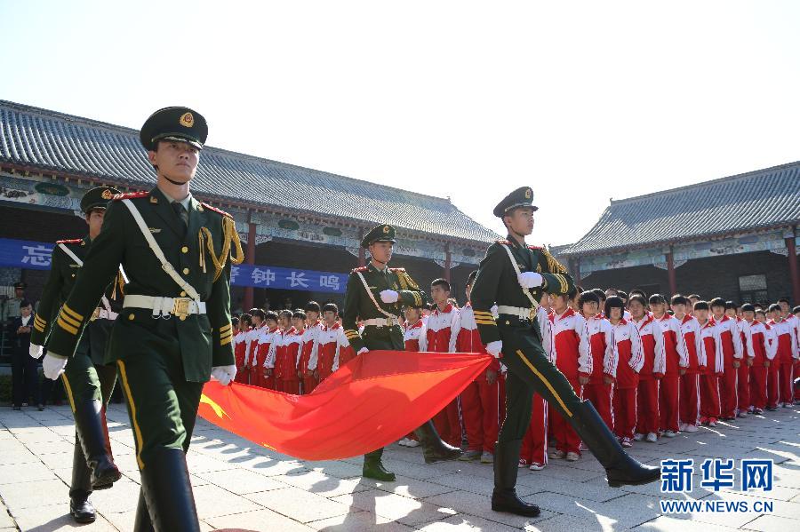 央廣網河南分網消息 據新華網報道:9月18日,武警吉林省總隊官兵在吉林省偽滿皇宮博物院參加紀念活動。當日,吉林省長春市2000余名各界人士,來到偽滿皇宮博物院參加“勿忘國恥珍愛和平”紀念“九一八事變”83周年系列活動,重溫歷史緬懷抗戰英烈。 新華社發(苑軍 攝)