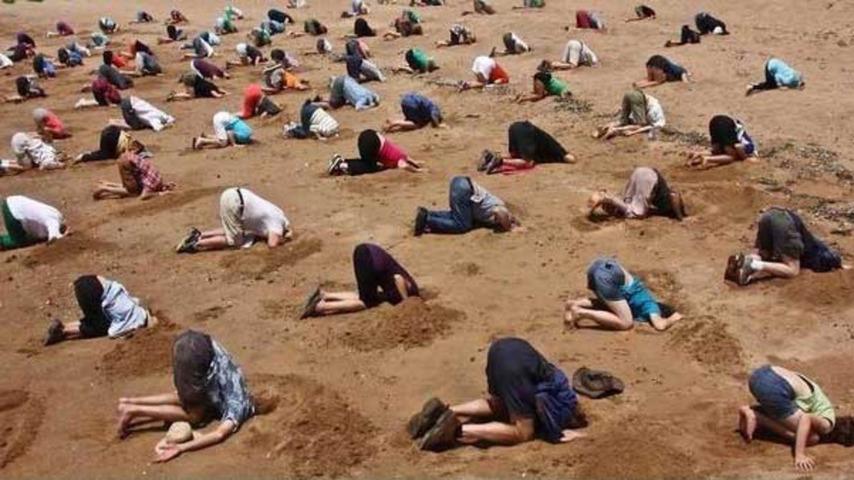 澳大利亞環(huán)境保護(hù)組織日前用一張“一大群人將頭埋在沙中“的圖片引起了全球注意,該組織認(rèn)為這張圖可以總結(jié)澳總理阿博特對(duì)應(yīng)對(duì)氣候變化的態(tài)度。