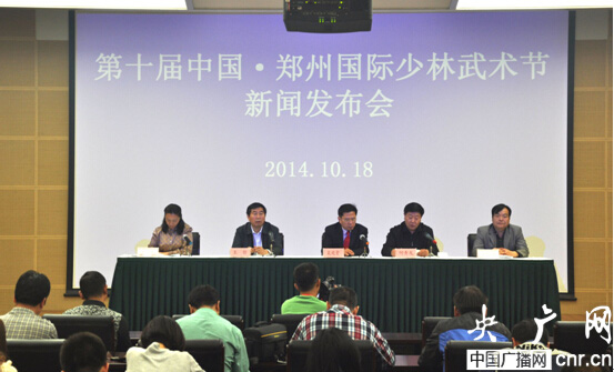 央廣網(wǎng)河南分網(wǎng)消息 (記者 陳保來)10月18日,第十屆中國鄭州國際少林武術(shù)節(jié)第二次新聞發(fā)布會在鄭東新區(qū)規(guī)劃展覽館舉行。國際武術(shù)聯(lián)合會執(zhí)行副主席、美國武聯(lián)主席吳廷貴,國家體育總局武術(shù)運動管理中心書記、副主任何青龍,武術(shù)節(jié)組委會副主任、鄭州市委常委、宣傳部長王哲 ,河南省體育局副巡視員張振中出席會議。