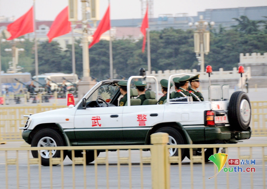 據中國青年網報道:2014年10月27日,北京,各警種在天安門廣場及周邊加強巡邏執勤工作,確保APEC會議順利召開。