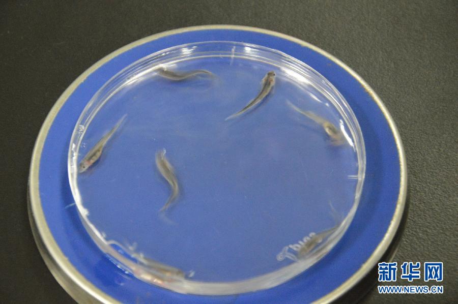 10月29日,中華鱘魚苗在培養皿中游弋。中國長江三峽集團公司中華鱘研究所近日透露,中華鱘全人工繁殖獲重大技術突破——曾參與過全人工繁殖的子一代中華鱘雌魚再次成熟并產卵出苗,這在中華鱘人工繁殖歷史上尚屬首次。對于中華鱘的物種保護具有重要意義。中華鱘是中國特有的古老珍稀魚類,也是世界現存魚類中最原始的種類之一,在地球上已繁衍生息1.4億年,被譽為“水中大熊貓”。