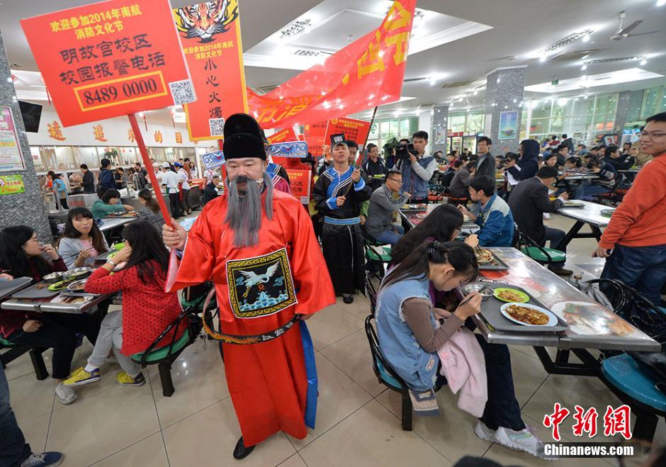 央廣網河南分網消息 據中國新聞網報道:10月30日,西游記中的唐僧師徒、身著古裝的狄仁杰,還有超級瑪麗、蜘蛛俠、擎天柱等各種人物形象齊聚南京航空航天大學內,參加該校舉辦的萬圣節消防游園會,手舉寫有“小心火燭”、“消防安全心中記”等牌子,化身消防衛士,用新穎活潑的方式宣傳消防知識,提醒學生,防患未然。寇曉潔 攝