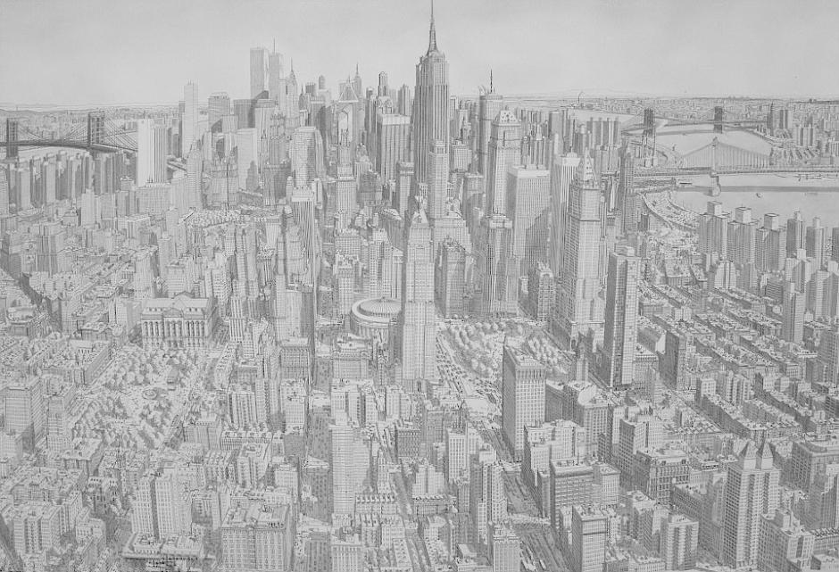 據英國《每日郵報》12月16日報道,來自荷蘭的插畫師史蒂芬,不僅畫技出眾,而且記憶力驚人。他擅長繪制極其細膩的城市風景,細致到街角的垃圾箱,每一幅繪制通常長達幾周甚至半年。令人驚奇的是,他并不需要像其他的畫家一樣對著風景作畫,只要他去一個城市游歷一番,就能清楚記下這個城市的面貌,簡直可以達到絲毫不差的地步。畫面上就是他描繪的紐約城。(網頁截圖)