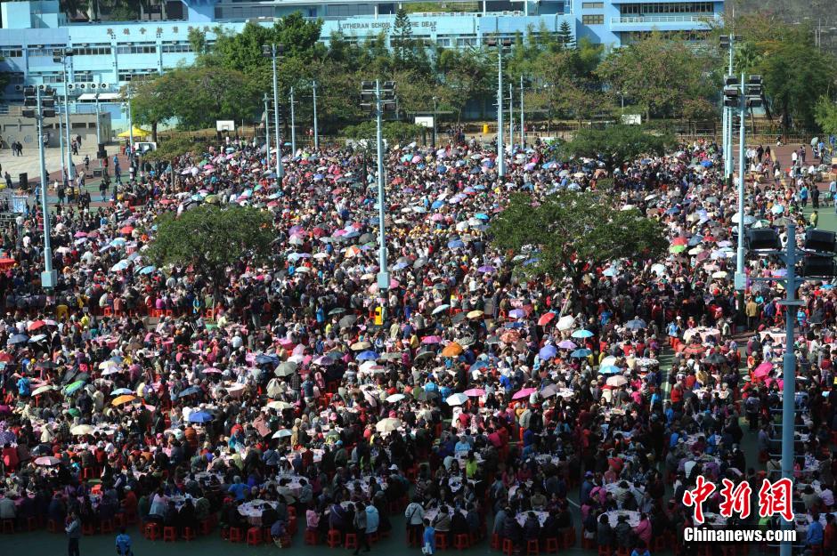 央廣網(wǎng)河南分網(wǎng)消息 據(jù)中國(guó)新聞網(wǎng)報(bào)道:12月21日在葵涌運(yùn)動(dòng)場(chǎng)舉行“共筑香港夢(mèng)-萬(wàn)人冬至盆菜宴”,為區(qū)內(nèi)低收入家庭、少數(shù)族裔人士安排“冬至團(tuán)年飯”。中新社發(fā) 譚達(dá)明 攝