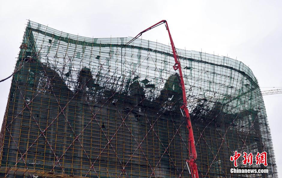 1月29日凌晨零時(shí)25分許,位于江西南昌市的江西科技師范大學(xué)發(fā)生一起樓面坍塌事故,目前已造成1人遇難18人受傷,其中3人重傷。據(jù)官方通報(bào),事故為該體育館建筑工程頂層現(xiàn)澆過程中高支模發(fā)生坍塌(面積約600平方米),傷亡人員均為工地施工人員,傷者已被送往醫(yī)院救治。目前,事故原因還在進(jìn)一步調(diào)查中。圖為發(fā)生坍塌事故的在建樓。 劉占昆 攝
