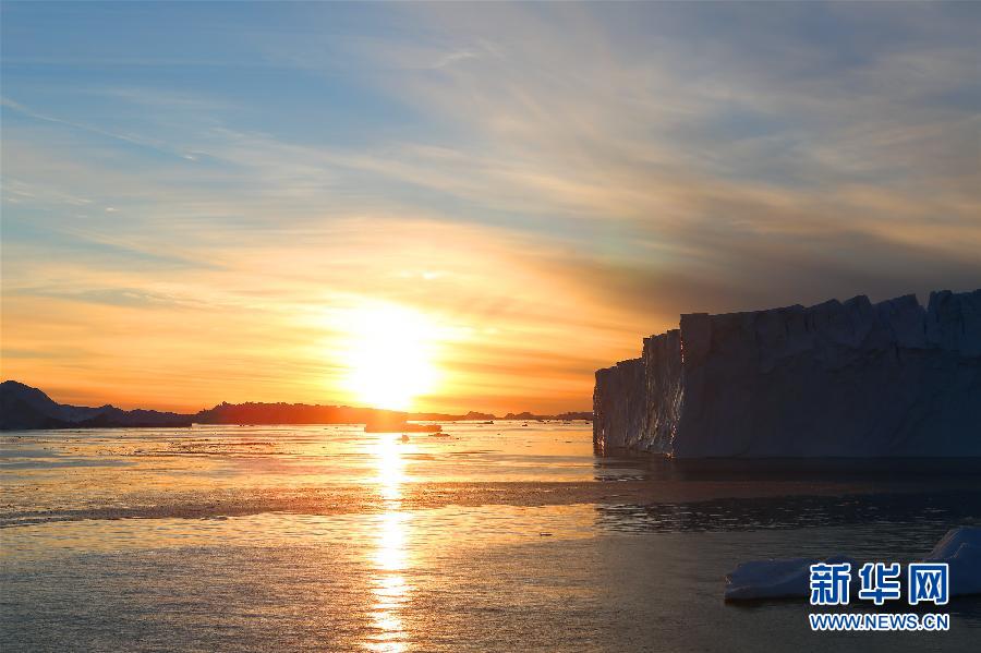 這是在“雪龍”號上拍攝的南極冰川黃昏時分的景色(3月3日攝)。
