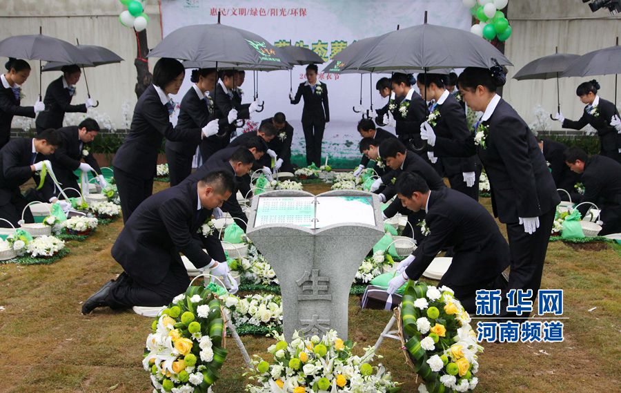 央廣網(wǎng)河南分網(wǎng)消息 當(dāng)日,河南省許昌市舉行“關(guān)懷生命,伴綠長青”免費(fèi)生態(tài)環(huán)保葬集體落葬儀式。此次生態(tài)環(huán)保葬禮共有28個家庭報名,“生態(tài)葬”采用不留名、不立碑、骨灰不保留,使用降解骨灰盒落葬的方式,達(dá)到骨灰自動分解、回歸自然,土地循環(huán)利用的目的。牛原 攝影