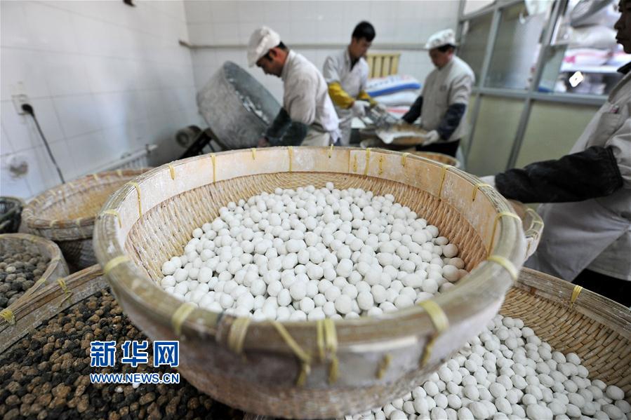 央廣網河南分網消息 2月15日,太原市老字號“老鼠窟”元宵店的工作人員在加工元宵。隨著元宵節臨近,山西太原的眾多老字號元宵店生意紅火,員工們采用傳統工藝加緊趕制各種口味的元宵,保障節日市場供應。 新華社記者 詹彥 攝