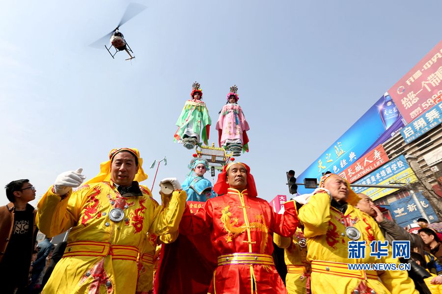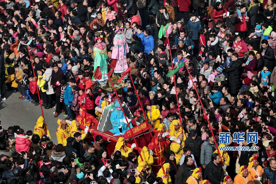 據(jù)介紹,抬閣是集歷史故事、神話傳奇于一體,融繪畫、戲曲、彩扎、紙塑、雜技等藝術為一身的漢族傳統(tǒng)民俗舞蹈。在木制的四方形小閣里有兩三個人扮飾戲曲故事中的人物,由別人抬著游行。抬閣已被列入國家級非物質文化遺產(chǎn)名錄。抬閣的種類繁多,各地抬閣的藝術形式各有特色 ,以金壇抬閣、徽州抬閣、廣東抬閣、安陽抬閣和山西平陽《抬閣》最為著名。新華網(wǎng)發(fā)(畢興世 馬慶祥攝)