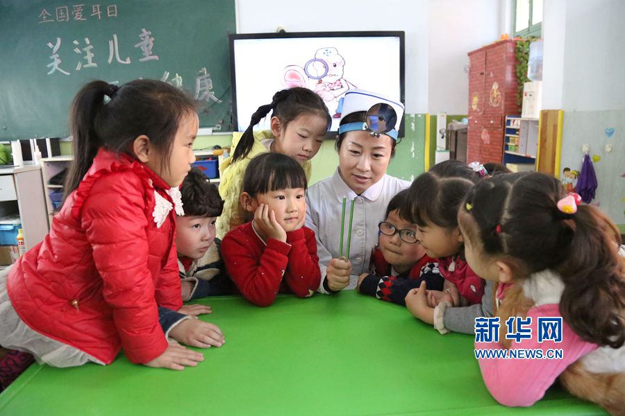 當天,安陽地區醫院耳鼻喉頭頸外科的醫務人員來到市婦女兒童活動中心幼兒園,給這里的小朋友上了一堂“愛護耳朵 保護耳膜 預防耳病”的科普知識課,通過耳科大夫曹阿姨詳細講解,孩子們明白了耳朵的生理結構、保護耳朵的正確方法,以及怎么樣預防分泌性中耳炎、外耳道異物、外傷性鼓膜穿孔等常見耳病的發生。之后耳科醫生曹艷利給大三班的小朋友一一做了聽力檢查,深受老師和家長稱贊。新華網發(畢興世 攝)