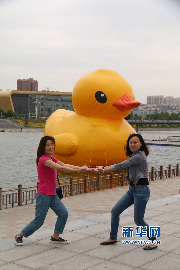 5月25日,風(fēng)靡世界的大黃鴨驚艷亮相美麗天鵝城三門峽,為第二十二屆黃河文化旅游節(jié)暨投資貿(mào)易洽談會助興增彩。大黃鴨由荷蘭藝術(shù)家霍夫曼設(shè)計創(chuàng)作并風(fēng)靡全世界,是現(xiàn)代化城市文明的標志。從2007年開始,大黃鴨就開始游歷世界,每次大黃鴨都會引來當(dāng)?shù)胤劢z的瘋狂追捧,給人們帶來驚喜、歡笑和對童年的美好回憶。新華網(wǎng)發(fā)(鞏衛(wèi)東 攝)