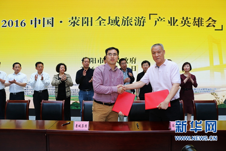 5月25日,河南省滎陽市舉辦了“2016中國·滎陽全域旅游產業英雄會”,數十位國內旅游業的著名專家和知名企業負責人來到滎陽市,為“重點景區+重大活動+鄉村旅游”全域旅游大格局把脈問診。5月26日,在滎陽市政府舉行的旅游交流分享會上,相關企業與滎陽市有關方面初步達成了3個層次7個方面的戰略合作協議。新華網發(王威 攝)