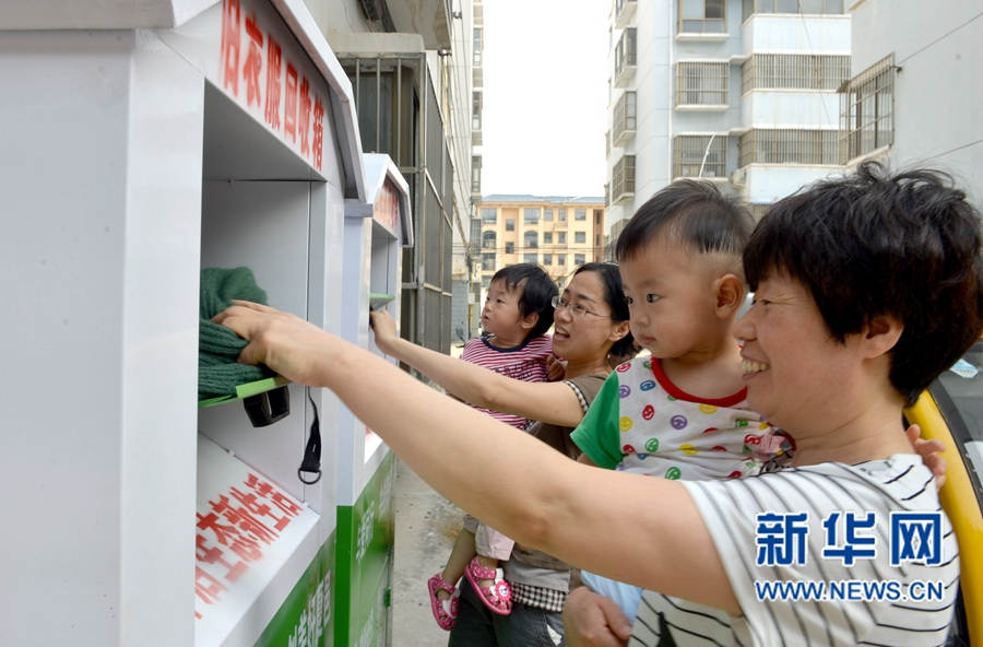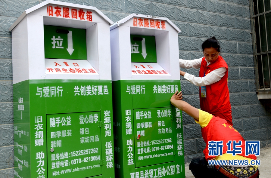 共青團河南省夏邑縣委和當(dāng)?shù)匾患一厥掌髽I(yè)聯(lián)合將100個環(huán)保舊衣回收箱投放居民區(qū)。居民可以將舊衣服放進箱中供再生資源企業(yè)回收,回收后的舊衣進行分級處理,一等級舊衣物將清洗消毒后捐獻給貧困地區(qū),其余等級的舊衣物處理后制作救災(zāi)帳篷或進行完全回收處理。