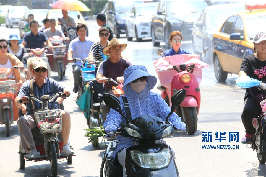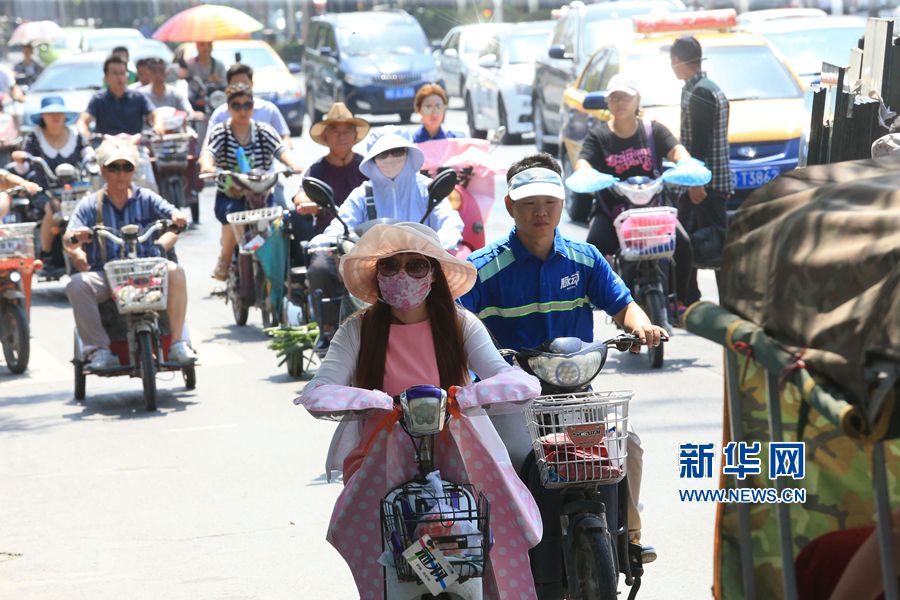 6月16日,人們冒著高溫在開封市街頭行走。當日,開封市烈日當空,天氣炎熱,氣溫飆升,最高氣溫升至34℃,儼然已到盛夏。在火辣辣的陽光下,人們用各種各樣的方式進行防曬。
