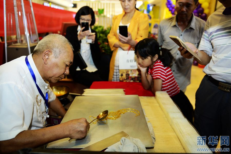 7月16日,河南鄭州鄭東新區舉行非物質文化遺產展,集中展演來自河南各地近50個非物質文化遺產項目,吸引眾多市民前來觀賞。