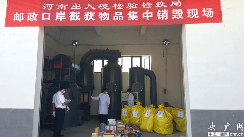 央廣網河南分網9月23日消息 (本網特別報道組)9月23日河南出入境檢驗檢疫局集中銷毀了從進境國際郵件中截獲的各類違禁物品,共計661批次,總重1037.14千克,包括肉制品、動物皮張、奶制品、海鮮、種子、種苗、原木等,其中不乏海參、燕窩、鮑魚、花膠等名貴產品。這些違禁物品主要來自日本、韓國、印度等20余個國家和地區。