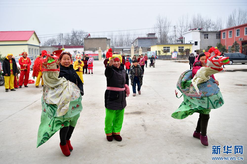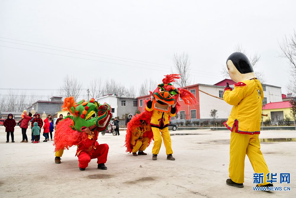 2月7日,村民在羅閣村文化舞臺表演舞獅。 當(dāng)日,河南省駐馬店市西平縣盆堯鎮(zhèn)羅閣村的文化舞臺熱鬧非凡,村民表演了舞獅、豬八戒背媳婦、抬轎子、劃旱船、騎竹馬、吹喇叭等民俗節(jié)目,吸引眾多村民前來觀看。新華社記者馮大鵬攝 -
