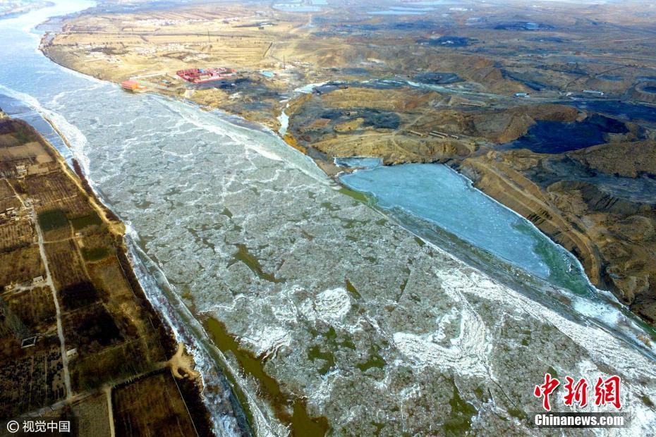 2017年2月7日,寧夏回族自治區石嘴山市,雖然已經立春,但因為寒流襲來,寧夏的春天卻有冬天的寒冷。2月7日11時,在黃河寧夏段石嘴山惠農段,這里的黃河依然被冰覆蓋。據了解,截止2月7日,黃河寧夏段麻黃溝河段封河20公里,其它河段無流凌、無封河。隨著近期氣溫回升,預計10日全部開河。圖片來源:視覺中國