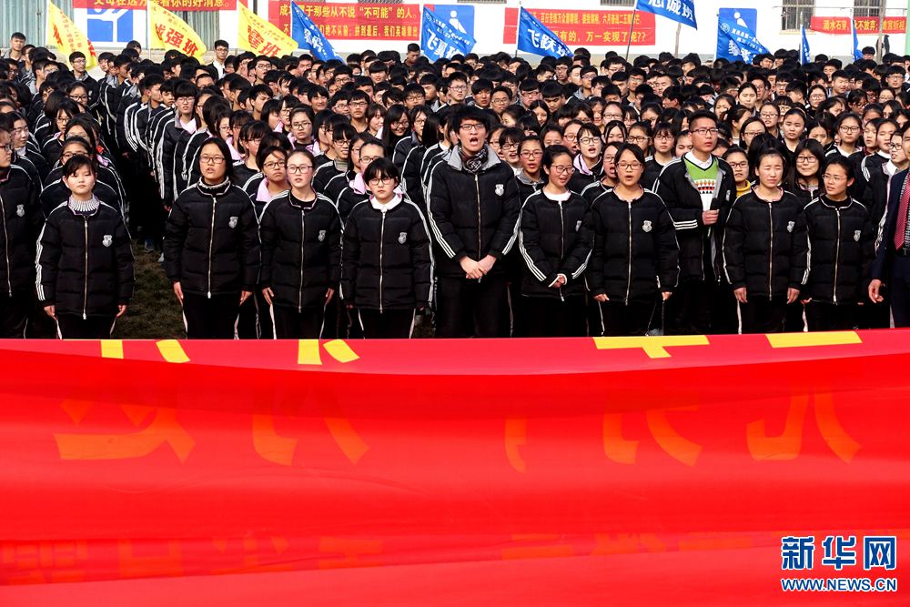 •    2月19日,河南省夏邑縣第一高級中學高三年級師生在集體宣讀誓言。