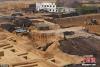 位于富民路與隴海路附近的原常莊村工地內(nèi),發(fā)現(xiàn)古墓的地方已被用警戒線圈了起來,里邊考古人員正在進(jìn)行挖掘中。 圖片來源:視覺中國 -